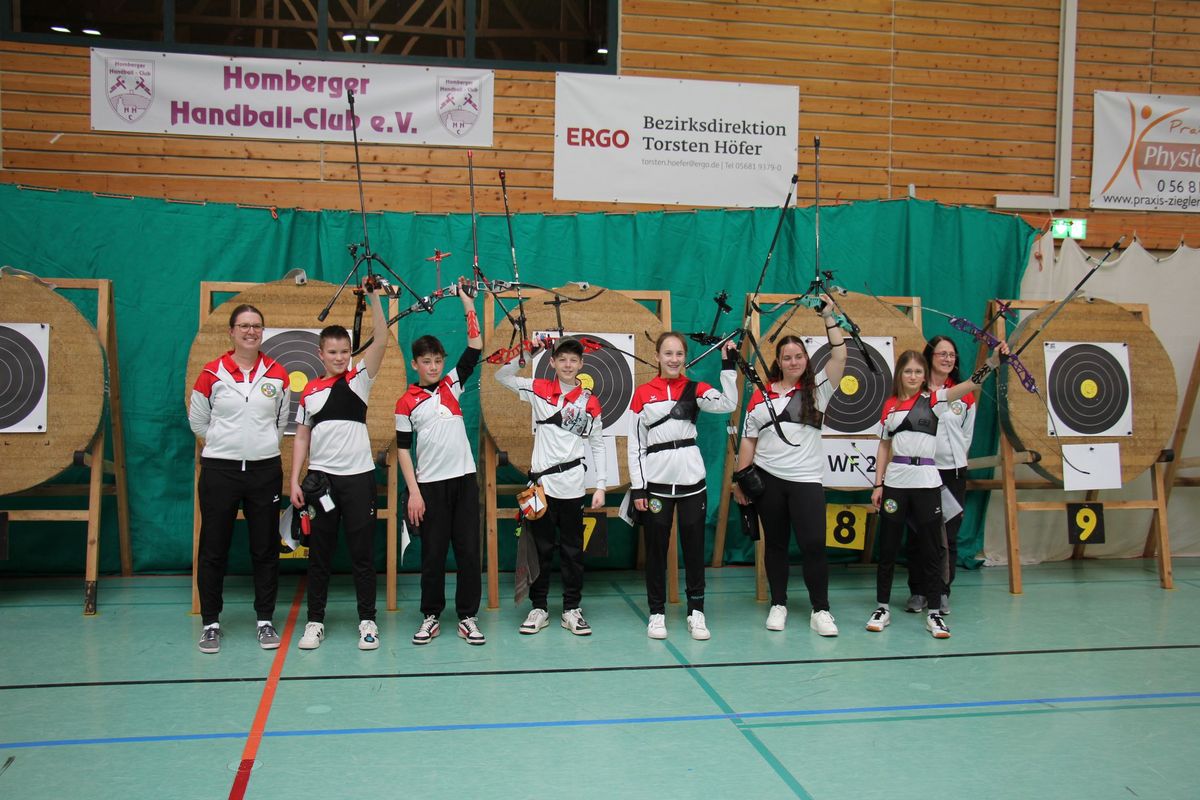 Der Schützenbezirk Vogelsberg dominierte die Mannschaftswertung mit einem Doppelsieg: Gleich zwei Teams aus dem Bezirk sicherten sich die ersten beiden Plätze mit einem deutlichen Vorsprung auf die Konkurrenz. Das Team Vogelsberg 1 (Sarah Flach, Marlen Kimpel, Amy Lein, Lenja Charlene Möller, Lorena Orth und Viktoria von Schönfels) erzielte herausragende 1758 Ringe. Mit 1730 Ringen belegte das Team Vogelsberg 2 (Felix Dietz, Liana Müller, Ida Pfefferkorn, Anna-Lena Rahn, Juliana Reith und Maja Ruppel) den zweiten Platz. Der dritte Rang ging an die Mannschaft aus dem Bezirk Nassau, die mit 1715 Ringen überzeugte (Valeska Zoe Anger, Jan-Marvin Glowatz, Julia Hörnig, Dimitar Karakutovski, Selina Piorr und Yanick Satony).