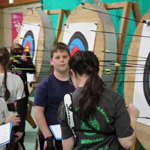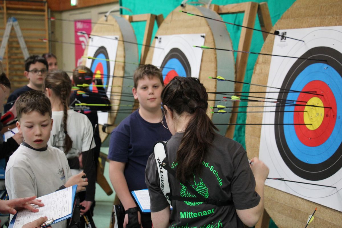 - Alle Klassen schießen 2 x 30 Pfeile auf 18 m Entfernung (außer Schülerklasse C).