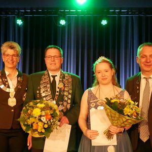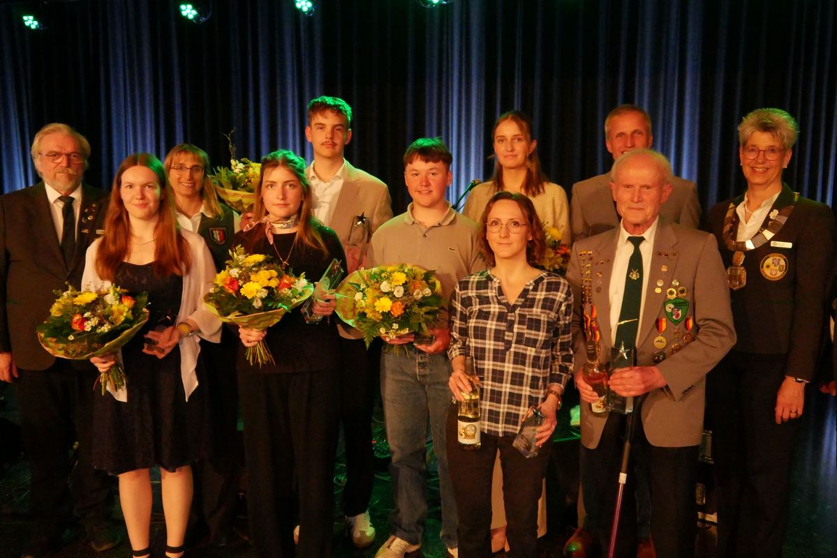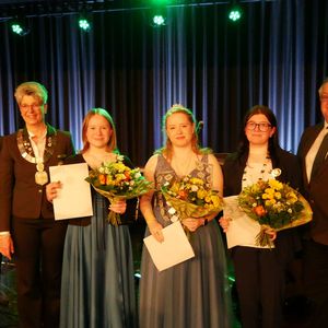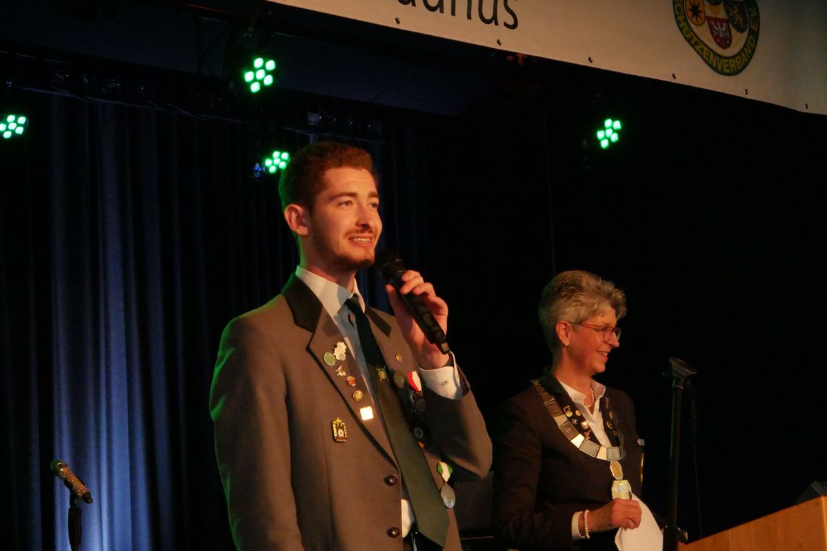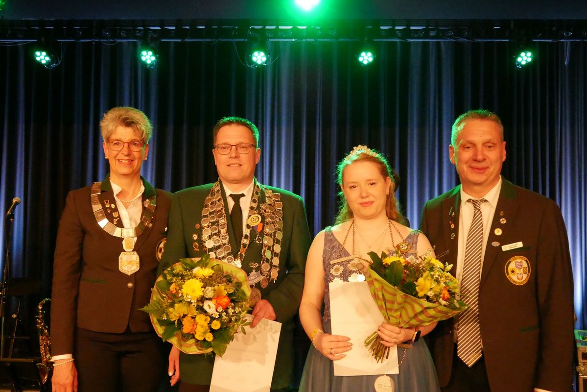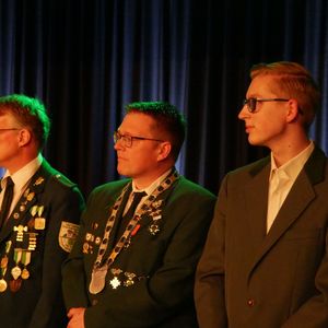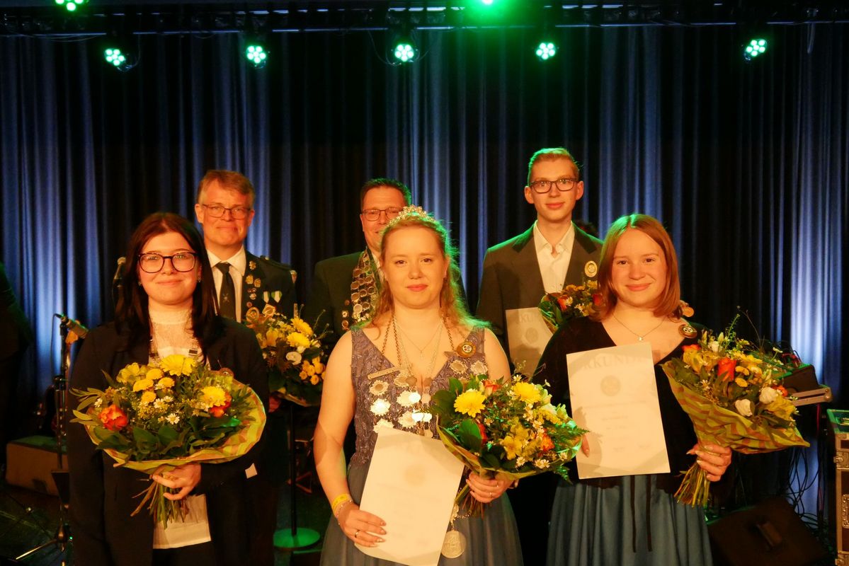 Den absoluten Höhepunkt und zugleich den spannendsten Teil der Veranstaltung stellte die Proklamation der neuen hessischen Schützenmajestäten dar. Da die Ergebnisse des bereits im Februar im Landesleistungszentrum Frankfurt ausgetragenen Königsschießens bis zu diesem Moment unter strengstem Verschluss gehalten worden waren, war die Nervosität im Saal förmlich greifbar. HSV-Vizepräsident Thomas Scholl führte durch die Zeremonie und rief die amtierenden Majestäten Jörg Frömel und Sven-Erik Göthel sowie die neuen Bezirkskönige auf beziehungsweise vor die Bühne. Im Jugendbereich zeichnete sich schnell eine weibliche Dominanz ab, was Scholl zu der scherzhaften Bemerkung veranlasste, dass man in diesem Jahr definitiv eine Jugendschützenkönigin haben werde. Den Titel der zweiten Ritterin sicherte sich Timea Schneider (Bezirk 38 Starkenburg) mit einem Teiler von 22, während Mia Sophie Voß (Bezirk 15 Waldecker Land) mit einem Teiler von 15 zur ersten Ritterin proklamiert wurde. Zur neuen Landes-Jugendschützenkönigin wurde schließlich Lara Reuß vom SV Hessische Schweiz Rhünda (Bezirk 18 Schwalm-Eder) gekürt, die mit einem sensationellen 3 Teiler das beste Ergebnis erzielte. Die Siegerin zeigte sich überwältigt und gab zu Protokoll, dass sie zwar gewusst habe, einen guten Schuss mit einer 10,9 gemacht zu haben, aber nicht damit gerechnet habe, dass dieser so exzellent ausfallen würde.