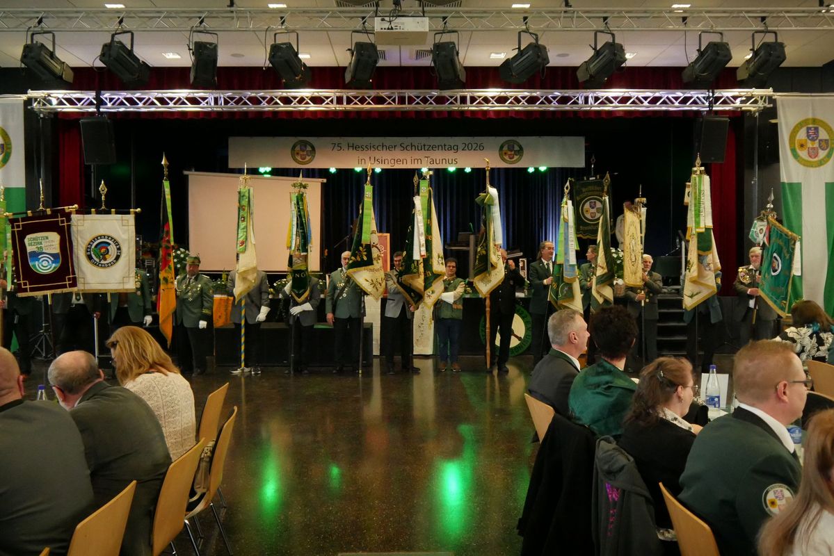 In ihrer Eröffnungsrede dankte Tanja Frank, die Präsidentin des Hessischen Schützenverbandes, dem ausrichtenden Schützenverein 1422 Usingen und hob insbesondere die Bedeutung des Ehrenamts hervor. Sie stellte fest, dass erst der Einsatz der zahlreichen Helfer dieses Fest überhaupt möglich gemacht habe. Niklas Schnieders, der erste Vorsitzende des gastgebenden Vereins, schloss sich dem Dank an und betonte die Freude über das Vertrauen, das dem Verein seitens des Verbandes entgegengebracht wurde.