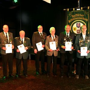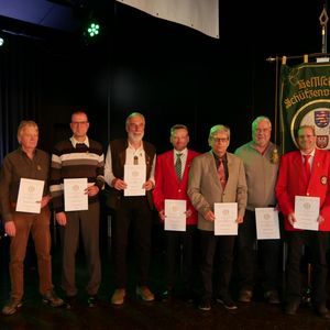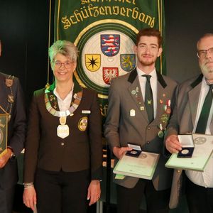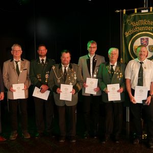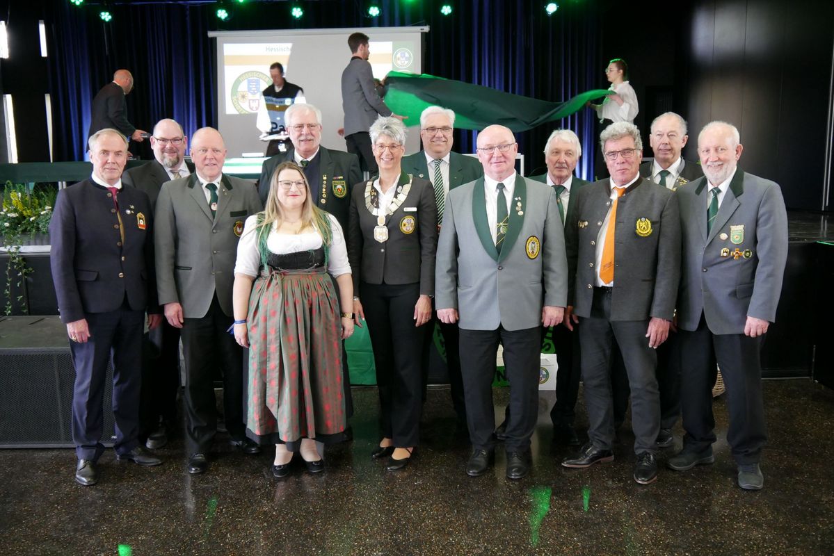 Den feierlichen Abschluss des Ehrungsmarathons bildeten die Auszeichnungen des Hessischen Schützenverbandes. Während die großen Hessischen Ehrenzeichen in Silber und Bronze bereits im Rahmen der vorangegangenen Gesamtvorstandssitzung verliehen worden waren, blieb die feierliche Bühne der Delegiertenversammlung der Vergabe der großen Hessischen Ehrenzeichen in Gold vorbehalten. Diese hohe Auszeichnung wurde an Björn Marz, Axel Jost, Kai Hüther, Dieter Waldeck, Nicole Lenz, Rainer Thiele, Rolf Wende, Werner Ast, Markus Reitz, Antje Dörr, Holger Föhre, Reinhold Löffler, Thomas Weitzel, Hans-Walter Pnischeck, Thomas Petri, Anne-Maren Horn, Peter Zerbock, Heiko Friedrich, Georg Weiss, Manfred Forster und Helmut Günther überreicht. Damit endete ein Programmpunkt, der eindrucksvoll die personelle Kontinuität und die Leidenschaft widerspiegelte, die das hessische Schützenwesen seit 75 Jahren tragen.
