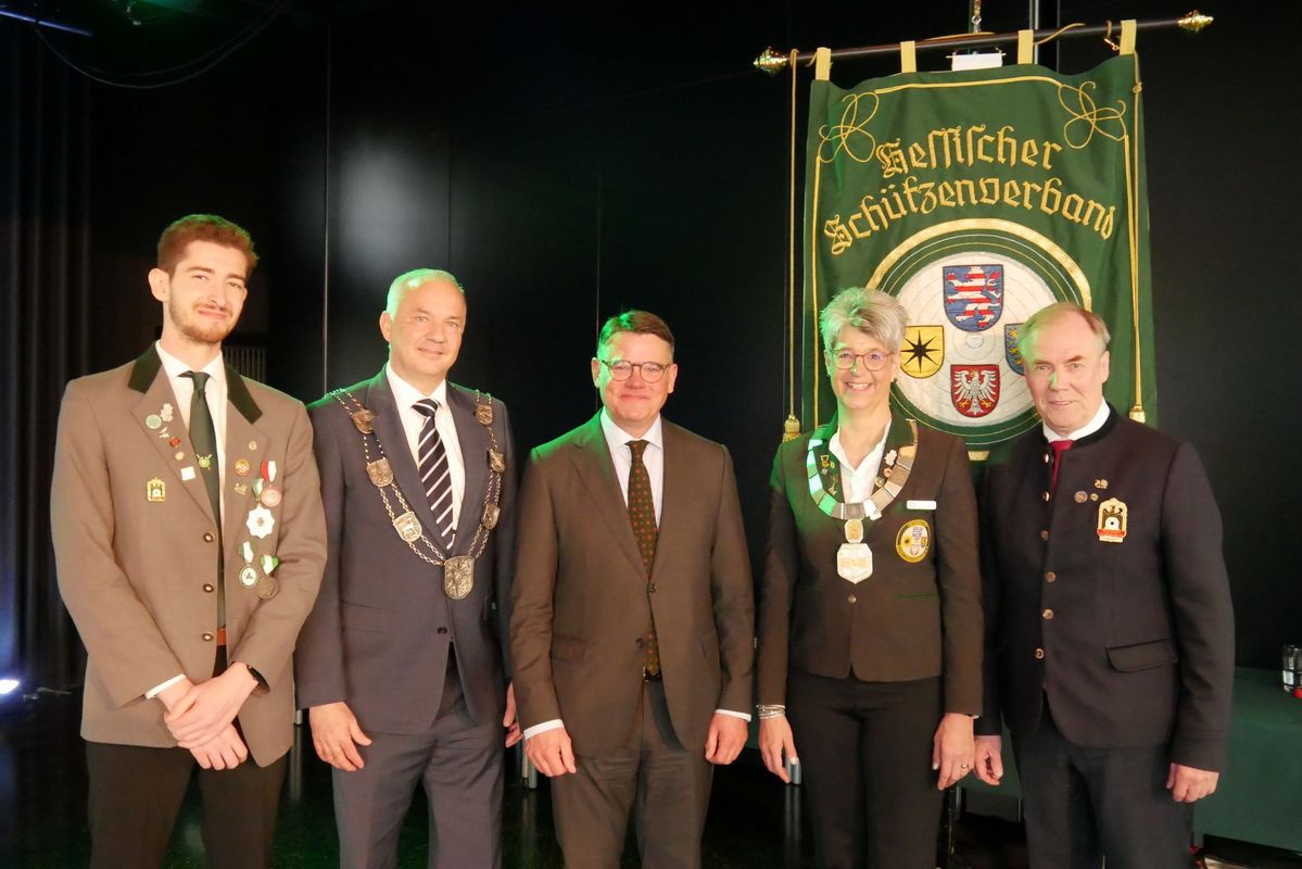 Mit Blick auf das 75-jährige Bestehen des Schützenverbandes schlug Boris Rhein den Bogen zur Landesgeschichte. 75 Jahre Hessischer Schützenverband seien mehr als nur ein Jubiläum, es sei ein Stück gelebte Geschichte Hessens. Seit der Gründung im Jahr 1951 hätten die Mitglieder zahlreiche sportliche Höhepunkte bei Welt- und Europameisterschaften sowie Olympischen Spielen erlebt und bedeutende Titel gesammelt. Damit seien die Schützinnen und Schützen wichtige Botschafter des Sports für das Land. Zudem betonte er, dass der Verband beispielhaft für die Verbindung von Tradition und Fortschritt sowie für Werte wie Verlässlichkeit, Respekt und Fairness stehe.