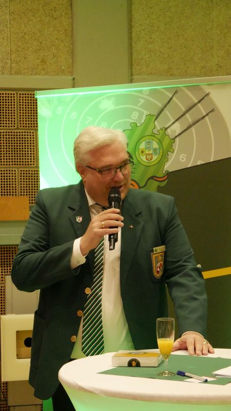 Das Grußwort der Landesschützenverbände sprach Maik Hollmann, der Präsident des Westfälischen Schützenbundes. Erfreute betonte die Bedeutung solcher Treffen für die gute Zusammenarbeit und Kommunikation zwischen den Landesverbänden und freute sich auf gute Gespräche an diesem Abend.