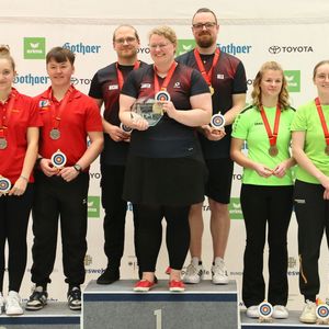 Herausragend war der hessische Doppelerfolg in der Recurve-Mannschaftswertung bei den Erwachsenen. Erstmals gewannen Judith und Michael Icking zusammen mit Nils Kolde die Mannschafts-Goldmedaille für den BSV Moischt. „Das ist der größte Erfolg in unserer Vereinsgeschichte“, strahlte Michael Icking und Nils Kolde ergänzte: „Edelmetall war unser Ziel, das hat heute sehr gut geklappt.“ Das Trio aus dem Marburger Stadtteil gewann den DM-Titel mit einem Ring Vorsprung vor dem Team aus Böddiger. Die Nachwuchstalente Estelle Moscatelli, Laura Engel und Phil Lüttmerding sicherten der nordhessischen Stadtteilmannschaft von Felsberg die Mannschafts-Silbermedaille.
