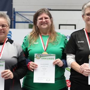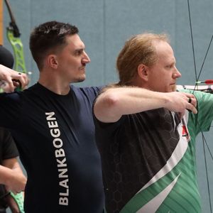 Eine bemerkenswerte Siegesserie setzte Jürgen Lippek bei den Langbogenschützen fort. Der 70-jährige vom TSV Schwarzenborn gewann zum sechsten Mal in Folge den 60 Pfeile-Wettbewerb auf 18 Meter Entfernung in der offenen Klasse. „Heute war ich ein Ring unter dem Ergebnis, das ich wollte“, erzählte Lippek nach seiner überlegenen Titelverteidigung. „Mein Ziel war, das alle Pfeile mindesten in die Acht gehen.“ Für den 3D-Nationalschützen ist die Hallensaison „Basistraining für die Saison im Freien.“ Mit den Landesmeisterschaften endet die Saison für die Langbogenschützen, die keinen Wettbewerb auf den Deutschen Meisterschaften bestreiten. „Ich trainiere ab sofort für die Teilnahme an den 3D-Weltmeisterschaften“, kündigte Jürgen Lippek sein Engagement für die Ende September 2026 in Yankton (USA) beginnenden Titelkämpfe an.