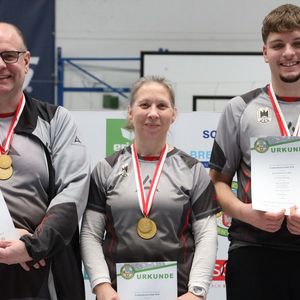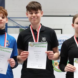 Mit dem Blankbogen sorgen die Sportler des SV Nieder-Florstadt für die herausragenden Leistungen. Timo Durchdewald, Lars Fleissner und Anke Barthelmess siegten zum dritten Mal in der Mannschaftswertung und steigerten erneut die hessische Rekordmarke. Mit 1543 Ringen verbesserte das Nieder-Florstädter Trio ihr Vorjahresergebnis um 23 Ringe und unterstrich zudem seine Überlegenheit in den Einzelwettbewerben. „Alles in Ordnung“, kommentierte Timo Durchdewald seinen fünften Sieg und vierten Titelgewinn in Folge bei den Herren. Der 48-Jährige hatte aber einen starken Konkurrenten aus den eigenen Reihen. Der 17-jährige Lars Fleissner startete erstmals bei den Erwachsenen und führte nach 30 der 60 Wertungspfeile die Konkurrenz an. „Der Wechsel nach Nieder-Florstadt hat mir viel gebracht“, meinte Lars Fleissner zu seiner Leistungssteigerung und konnte sich über das Lob von Timo Durchdewald freuen. „Bei den Deutschen Meisterschaften in Berlin werden wir sehen, was geht.“ Bei den Herren feierten Timo Durchdewald und Lars Fleissner einen Doppelsieg im Einzel für den SV Nieder-Florstadt, ebenso wie Anke Barthelmess und Nicole Neurode in der Damenklasse. Im Vorjahr in der weiblichen Masterklasse siegreich, wechselte Anke Barthelmess wieder in die Damenklasse und gewann nach 2024 ihren zweiten Landesmeistertitel. “Wir trainieren vier Mal in der Woche“, sagte Anke Barthelmess zu den Nieder-Florstädter Leistungssteigerungen und blickt bereits auf die Teilnahme an den Deutschen Meisterschaften. “Mit den Besten zu schießen, ist eine Ehre.“
