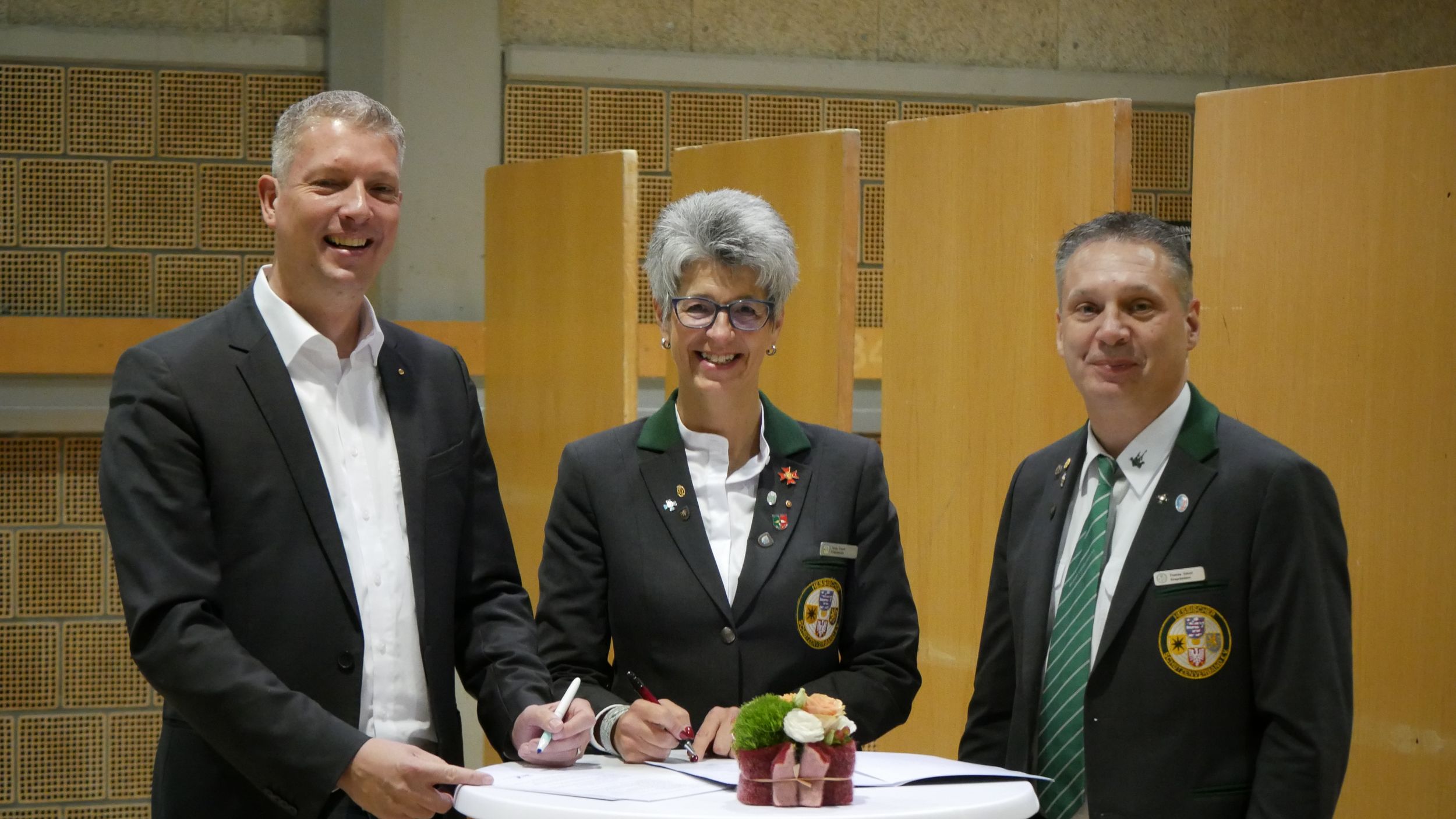 Unter den Gästen bei der Eröffnung der modernisierten Luftdruckwaffenhalle am vergangenen Mittwoch (23.11.2022) im Landesleistungszentrum des Hessischen Schützenverbandes (HSV) in Frankfurt war auch Michael Westinger, der Geschäftsführer der Firma Feinwerkbau. Im Gepäck hatte er einen Kooperationsvertrag, den er gemeinsam mit HSV-Präsidentin Tanja Frank und HSV-Vizepräsident Thomas Scholl unterzeichnete.