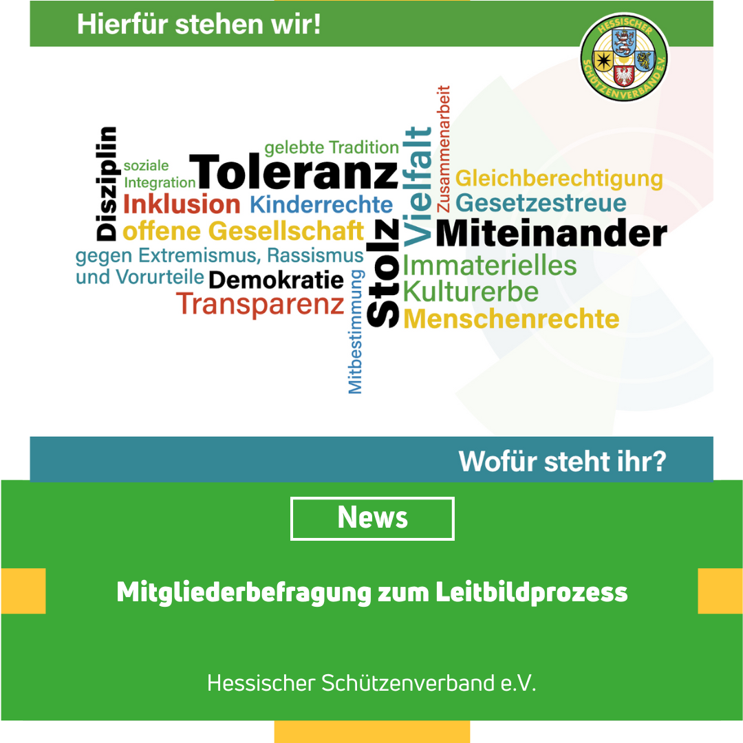 Zunächst möchte die Leitbild-AG aber allen Schützen im Hessischen Schützenverband noch einmal die Möglichkeit geben, sich in den Leitbild-Prozess einzubringen. Aus diesem Grund und um die eigene Perspektive noch einmal zu erweitern hat sich die Arbeitsgruppe entschieden, eine Mitgliederbefragung durchzuführen.