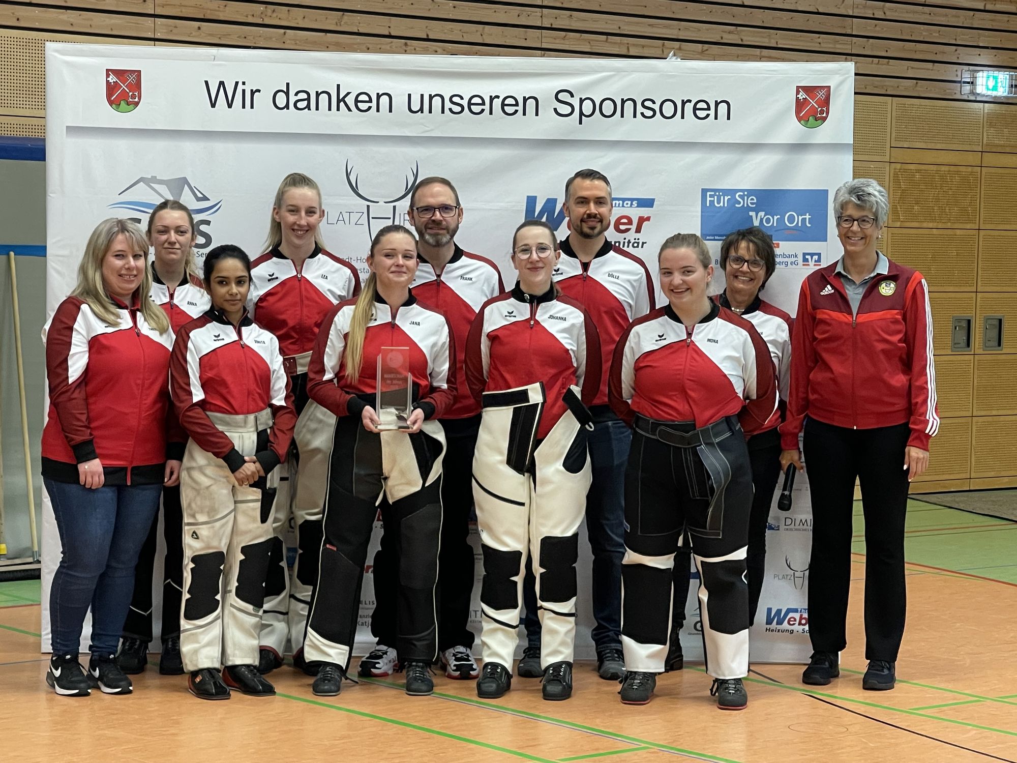 Jetzt konnte die Auszeichnung endlich ihren Besitzern übergeben werden. „Der Bundesliga-Auftakt mit einem Heimwettkampf für Petersberg war jetzt die Gelegenheit für die Übergabe,“ stellte Tanja Frank, die Präsidentin des Hessischen Schützenverbandes, fest. Sie war am vergangenen Wochenende extra aus diesem Grund in die Kreissporthalle in Petersberg gekommen.