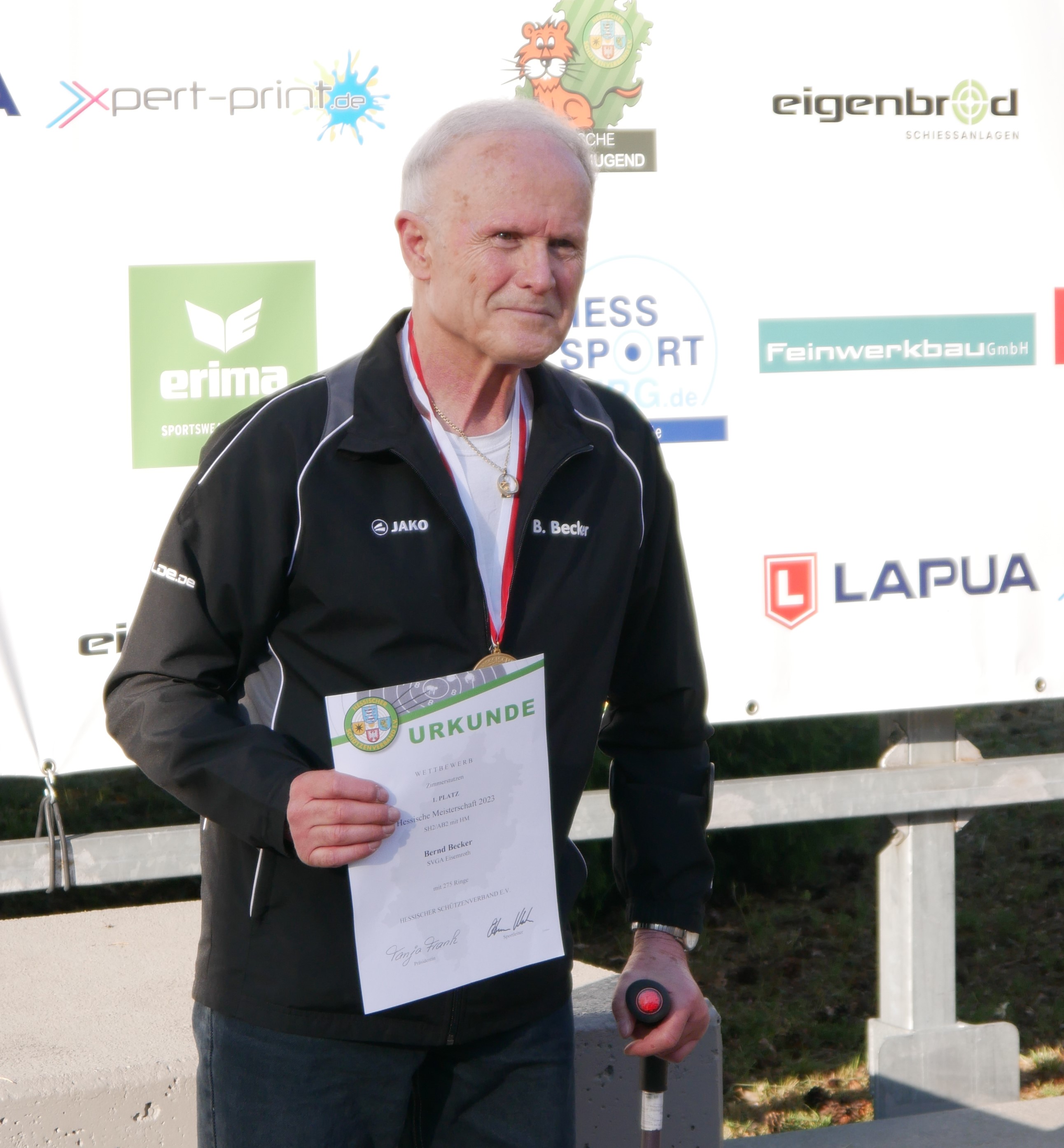 Bernd Becker konnte sich im Anschluss noch zwei weitere Hessenmeistertitel sichern. Als einziger Para-Sportler mit dem Zimmerstutzen kam er auf 275 Ringe. Und auch in der Disziplin KK-Gewehr Auflage 100m bei den Senioren IV kann sich Bernd Becker Hessenmeister nennen. Er kam in dieser Disziplin auf 317,8 Ringe. Damit verwies er Manfred Schmidt vom SV Diana Ober-Roden (316,0) und Roman Krivosija (315,2) auf die Plätze.