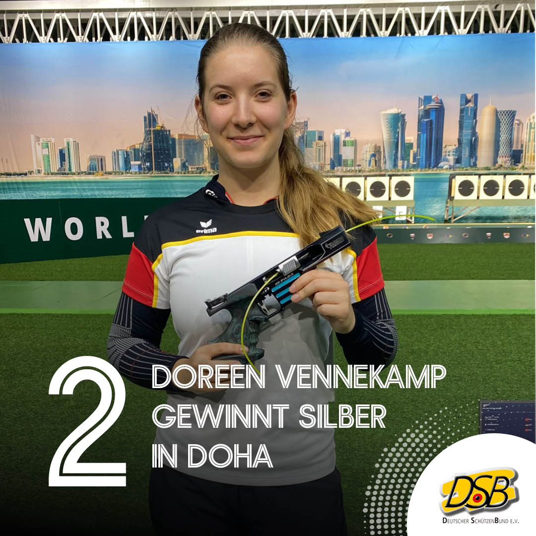 Mit der Sportpistole erreichte Doreen Vennekamp einen glänzenden Saisonabschluss und gewann die Silbermedaille. In einem starken Finale traf sie 31-Mal und musste sich nur der Chinesin Sixuan Feng geschlagen geben, die bei den 40 Schuss auf 37 Treffer kam.