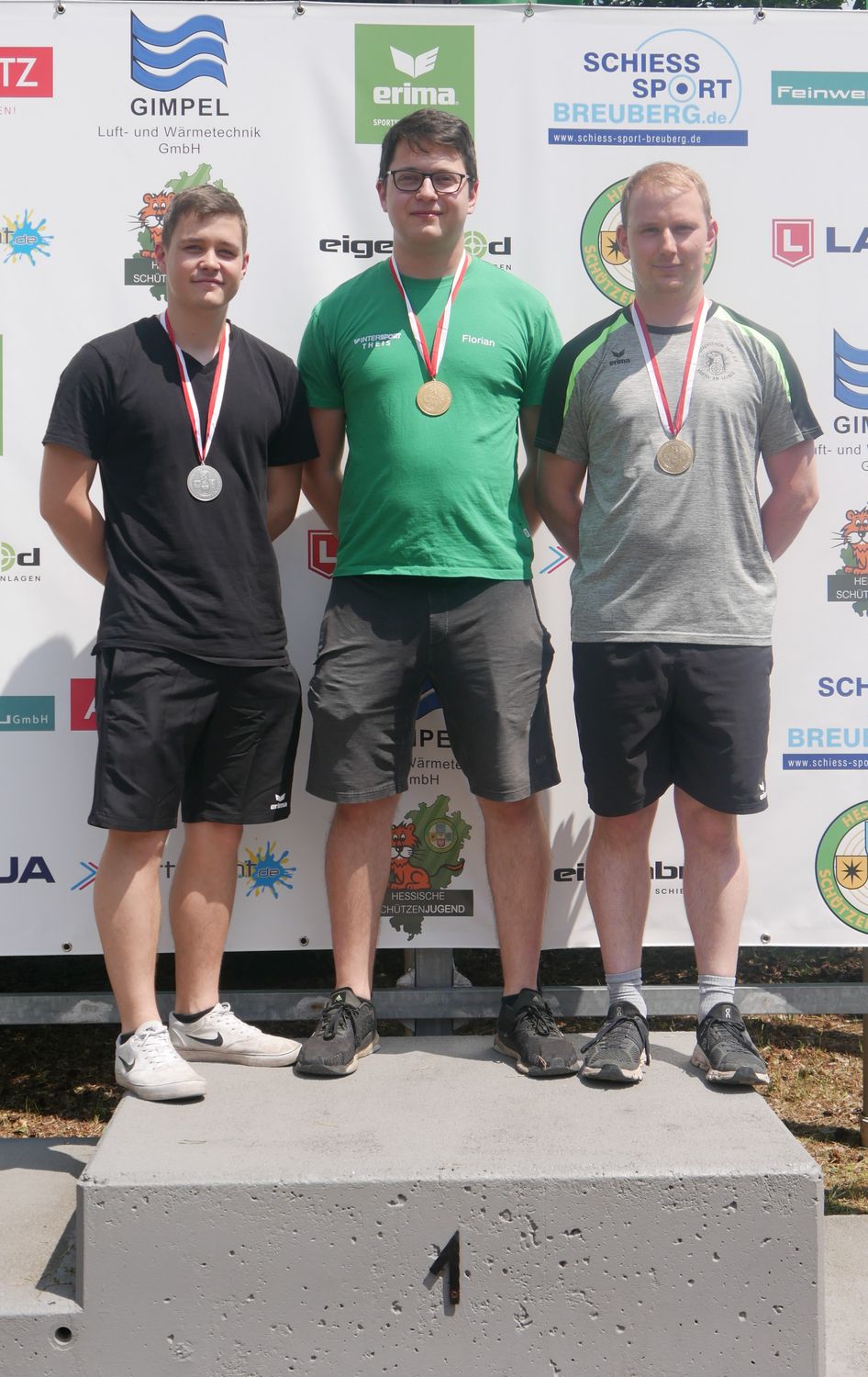 In einem spannenden Finalmatch konnte sich Florian Peter vom SV „Gut Ziel“ Gensungen mit der Luftpistole in der Wettkampfklasse Herren I gegen eine hochkarätige Konkurrenz durchsetzen. Nach den anfänglichen Fünferserien lag er noch im Mittelfeld. Mit seinen Einzelschüssen arbeitete er sich mit einer Reihe von Zehnern kontinuierlich nach vorne und lag vor den letzten beiden Schüssen nur noch 0,3 Ringe hinter dem bis dahin führenden Fabian Otto (SV Lengers). Mit den letzten beiden Schüssen gelangen Fabian Otto eine 10,1 und eine 9,2. Florian Peter setzte eine 10,8 und eine 10,0 und entschied das Finalmatch mit 240,4 Ringen zu 239,2 Ringen für sich. Den dritten Platz sicherte sich Aaron Sauter vom SV Kriftel.