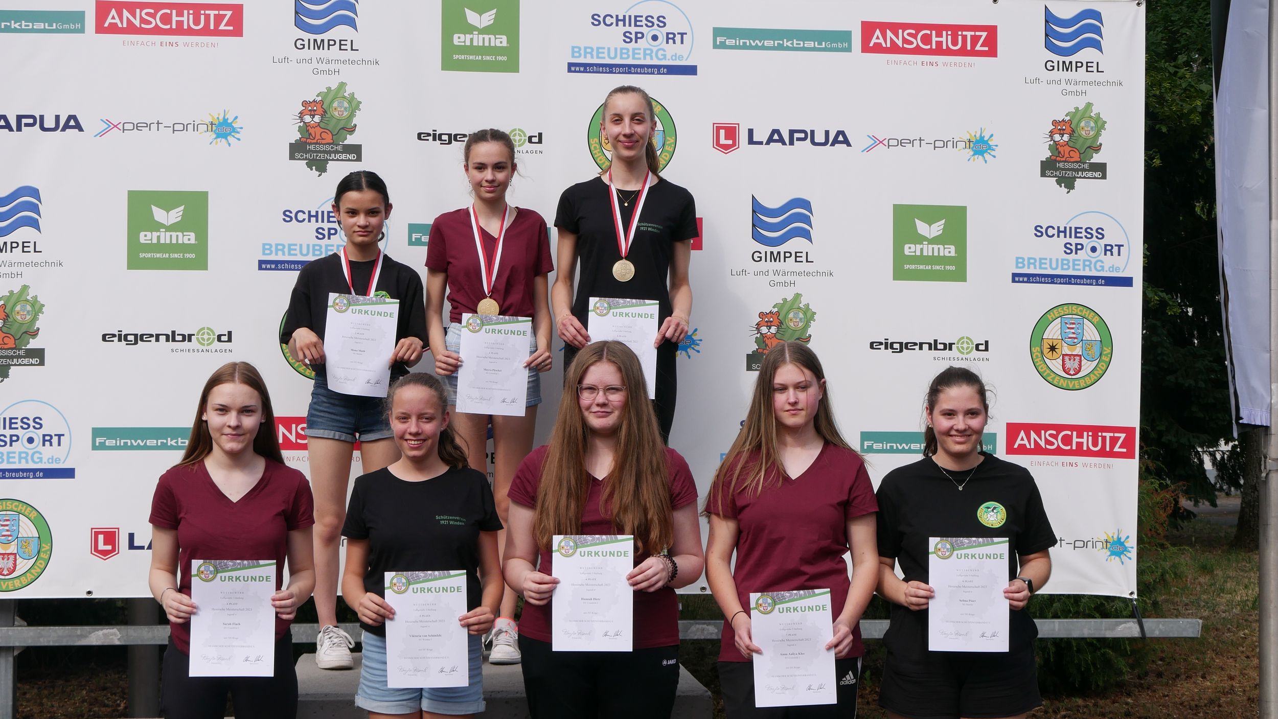 In der Mannschaftswertung ging Gold an das Team des SV Stärklos mit Merle Baucke, Jaqueline Becker und Leah Faust. Zusammen kamen sie auf 1838,7 Ringe. Silber ging an Aileen Schad, Luisa Günther und Mona Dorn vom SV Traisbach, die 1823 Ringe sammelten. Und da Siegertrio des vergangenen Jahres, Leila Hoffmann, Annika Peters und Patricia Seipel vom SV Petersberg kamen mit 1810,8 Ringen auf Platz drei.