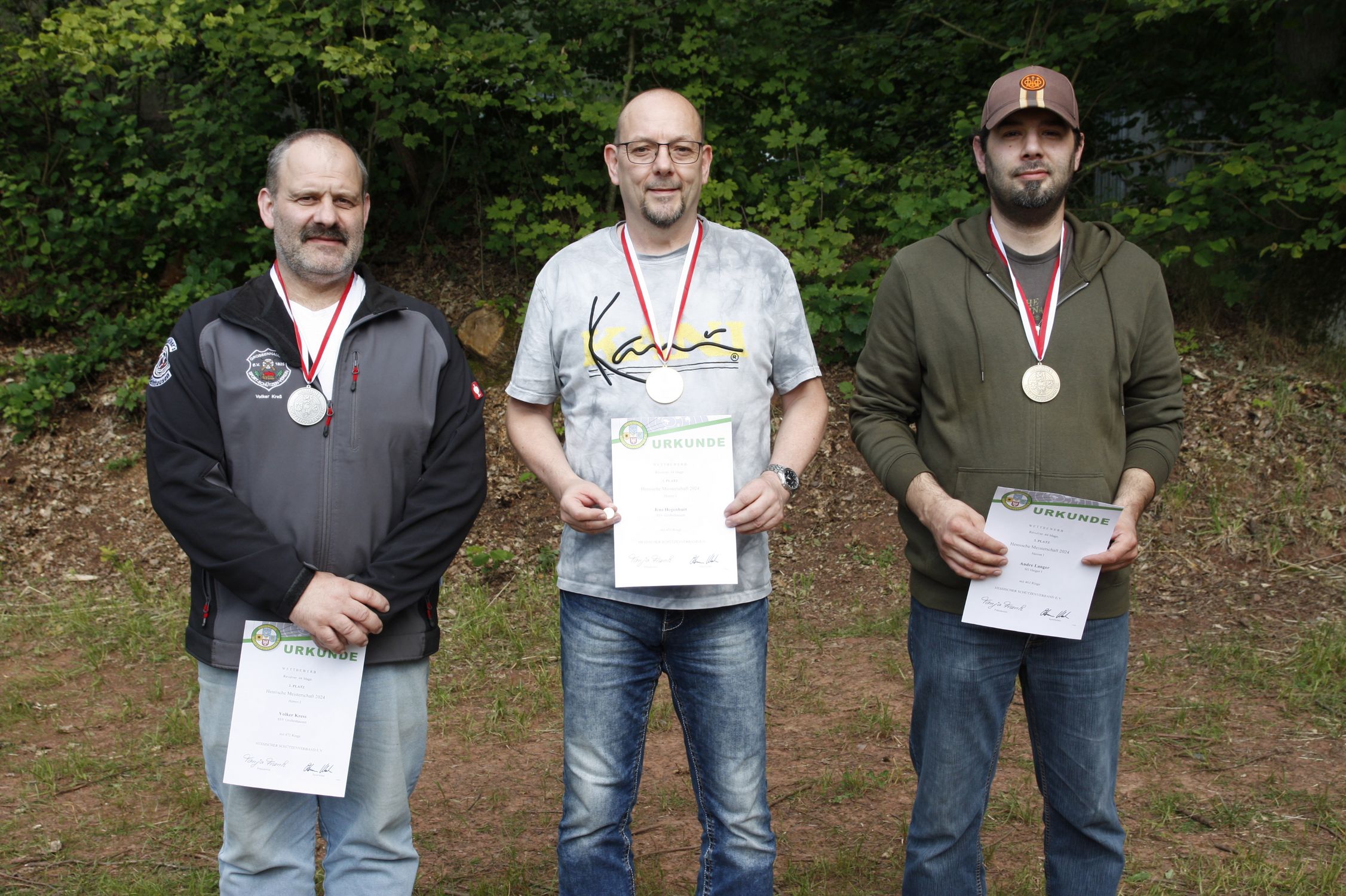 Am Samstag standen die Wettbewerbe mit dem Revolver Kaliber .44 Magnum auf dem Programm. Bei den Herren I konnten sich dabei zwei Schützen des SSV Großenhausen mit Abstand zur Konkurrenz die ersten beiden Plätze sichern. Gold ging mit 475 Ringen an Jens Hegenbart, Silber gewann mit 472 Ringen Volker Kress. Die Bronzemedaille sicherte sich mit 463 Zählern Andre langer von der SG Haiger.