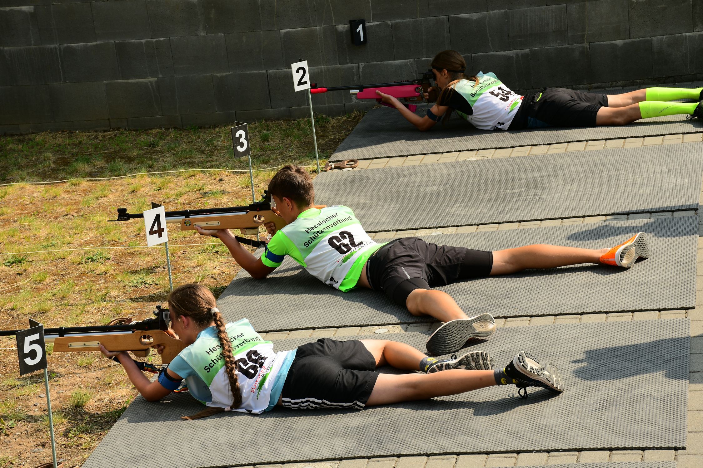 Es ging in den Disziplinen Sprint und Massenstart um die Teilnahme an der Deutschen Meisterschaft im September im Harz. Am Samstagvormittag starteten die Wettkämpfe mit den Schülern. Bei den Schülern B siegten Lina Gademann und Marlon Poch jeweils in Ihren Klassen. Beide sind in der ersten Saison mit dem Luftgewehr und machten ihre Sache sehr gut. Lina benötigte für 2,4 km mit zwei Schießeinlagen und dem Absolvieren der geschossenen fünf Strafrunden 15:12 Minuten. Marlon leistete sich nur einen Fehler und kam auf 12:16 Minuten. Die beste Schüler-Zeit des Tages lief aber Paul Rabe, ebenfalls vom SV 1874 Laubach, in 11:29 Minuten in der Klasse der älteren Schüler A. Hier folgte ihm sein Vereinskamerad Felix Scharmann auf dem zweiten Platz. In der Klasse der Schülerinnen A konnte sich Sophie Wink vom SV Bimbach auf Rang drei platzieren. Sie kam mit nur einem Schießfehler durch den Wettkampf.