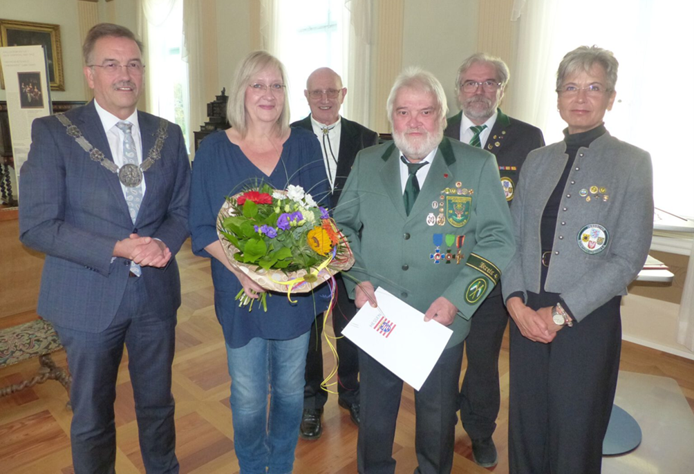 Axel Gorchs erhielt die Auszeichnung für sein langjähriges Engagement für das Schützenwesen. Der 66-Jährige war unter anderem als Pistolenreferent im Schützenkreis Wetzlar und im Bezirk Lahn-Dill, als nationaler Wettkampfrichter beim Hessischen Schützenverband und 35 Jahre lang im Vorstand seines Heimatvereins, dem Schützenverein Hubertus 1961 Dutenhofen tätig.