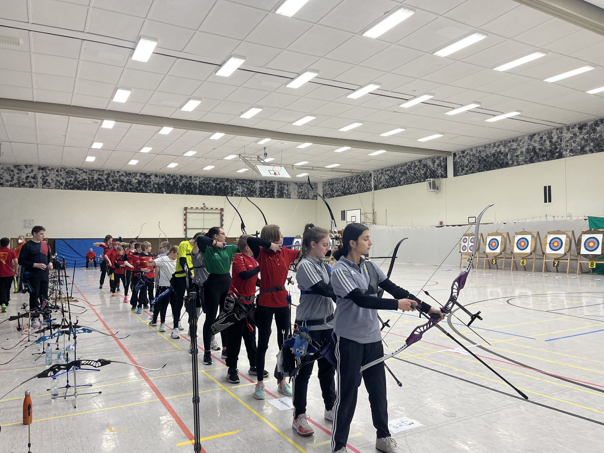 Am Schulvergleich können alle hessischen Schulen und Kooperationen zwischen Schulen und Bogensportvereinen teilnehmen. Diesmal beteiligten sich neun Mannschaften mit insgesamt 53 jungen Schützinnen und Schützen.