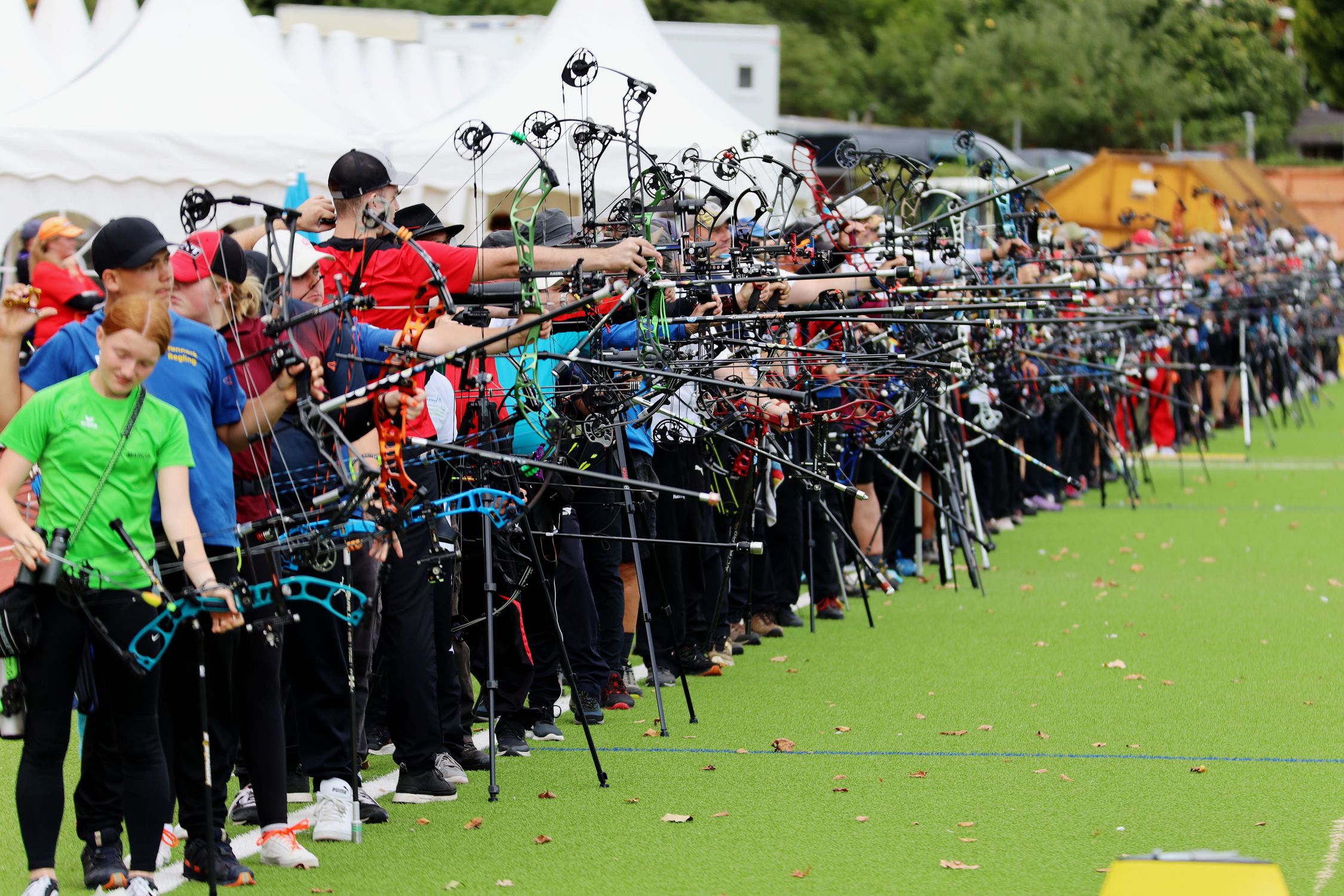 Sicher die Teilnahme an den Medaillenentscheidungen geschafft haben es mit dem Compoundbogen Carolin Landesfeind und ihre Mutter Dorith vom SV Böddiger und Kristin Schönbach von den Offenbacher Flobertschützen bei den Frauen. Erwartungsgemäß erreichte Phil Lüttmerding vom SV Böddiger in der Recurvebogen-Jugendklasse die Medaillenrunde, während Nele Harbusch in der weiblichen Jugendklasse im Viertelfinale mit 3:7 gegen Paulina Middendorf nach fünf Drei-Pfeile-Sätzen mit 3:7 Punkten den Einzug ins Halbfinale verpasste. Knapp verpasst hat auch Florian Grafmans die Teilnahme am Finale auf dem Bowling Green. Nach einem 145:145 Remis im Viertelfinale gegen Henning Lüpkemann verpasste er im Shoot-Off denkbar knapp die Teilnahme am Halbfinale.