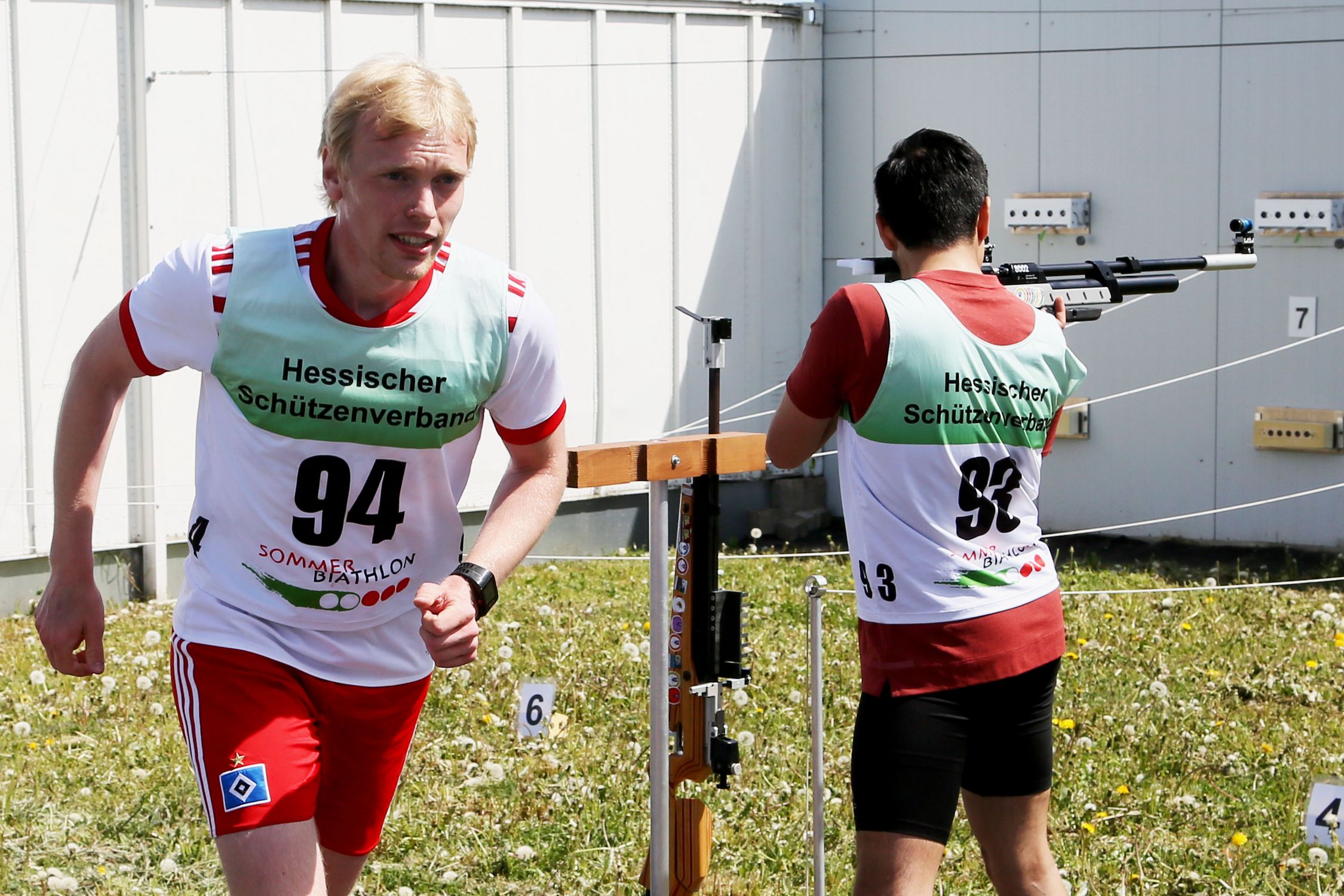 Eine Woche nach seinem dritten Platz beim „Grand Prix Target Sprint“ des Internationalen Schießsportverbandes (ISSF) in Dingolfing startete Max Hubl bei den Hessenmeisterschaften, die auf dem Sportgelände seines Heimatvereins SV Mademühlen ausgetragen wurden. Trotz gesundheitlicher Probleme, die noch aus einer Zerrung resultieren, die er sich bei der „World Tour“ im ägyptischen Kairo zuzog, wurde er seiner Favoritenrolle in der Herrenklasse I (21 bis 40 Jahre) eindrucksvoll gerecht. Die Sommerbiathlon-Kurzvariante mit drei 400 Meter Laufrunden und zwei Schießeinlagen im Stehendanschlag absolvierte Max Hubl in 5,27 Minuten und profitierte auch von seiner Zielsicherheit mit dem Luftgewehr auf 10 Meter Entfernung. „Ich habe nur zwei Nachlader gebraucht“, erzählte er nach seinem Sieg mit 25 Sekunden Vorsprung auf Mark Andree Sippel. Der Zweitplatzierte Sommerbiathlet vom SV Stärklos hatte ebenfalls mit seiner Fitness im Vorfeld der Titelkämpfe Probleme. „Ich war gut im Training, dann hat mich Corona gestoppt. Ich war komplett aus dem Training und versuche jetzt wieder zurückzukommen“, so Mark Andree Sippel, der durch drei Nachlader beim Schießen keine Zeit gegenüber Max Hubl gutmachen konnte. „Mein Ziel sind die Deutschen Meisterschaften und dann das Beste am Tag herauszuholen.“