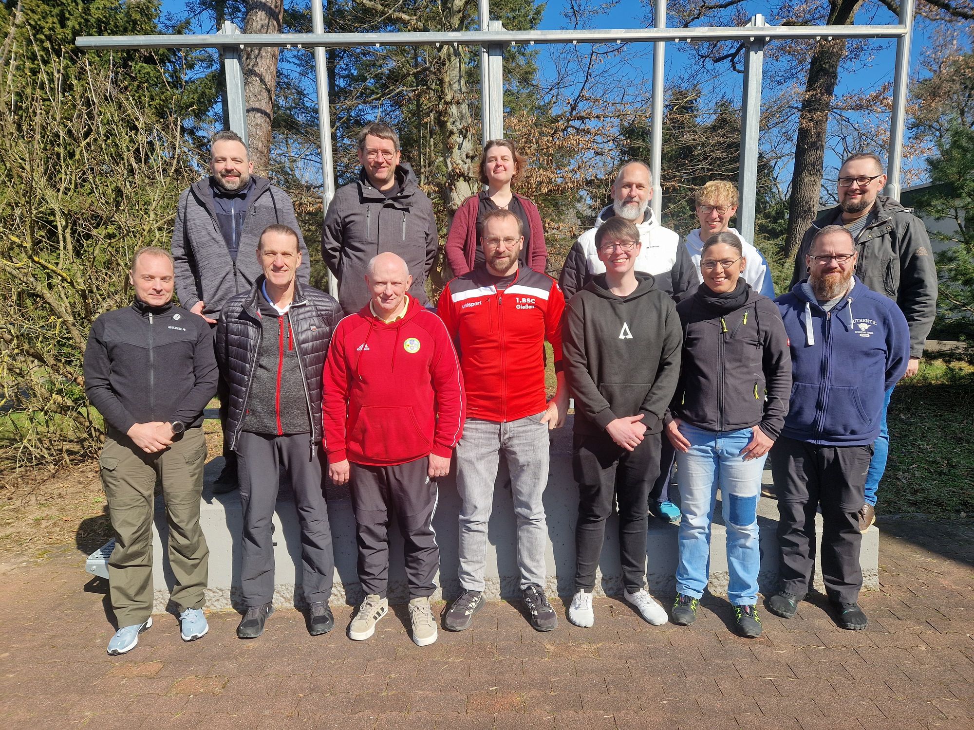 Eine Woche später, am 23. März, wurde erstmals das Technikbasismodul Bogen durchgeführt – ein zentraler Bestandteil der neuen Ausbildung zum Trainerassistenten Bogen. In dem Lehrgang erhielten 15 motivierte Teilnehmer eine Einführung in die Schießtechnik nach dem Positionsphasenmodell sowie in die grundlegende Materialkunde. Mit Tina Böcher und Andreas Zimmermann verstärkten zwei neue Ausbilder das Team, die künftig weitere Schulungen übernehmen werden.
