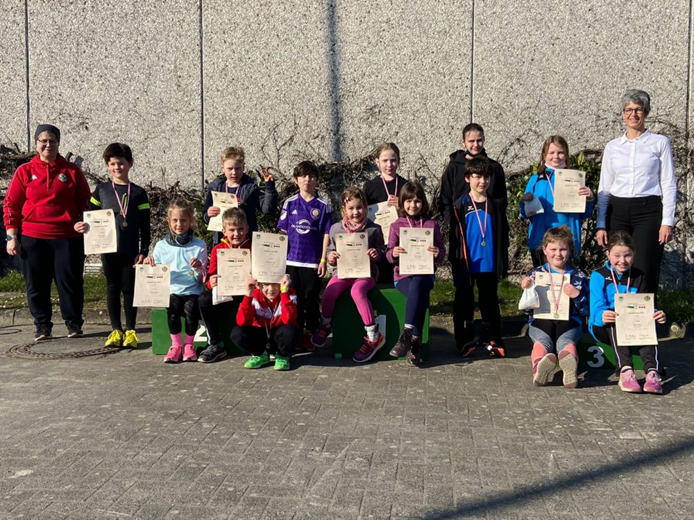 Nach dem Luftgewehr-Wettbewerb standen die 14 Bambinis der Jahrgänge 2010 bis 2016 im Blickpunkt, die in vier Klassen mit dem Lichtpunktgewehr zwei Schießeinlagen und eine Laufstrecke von 1,2 Kilometern absolvierten.
