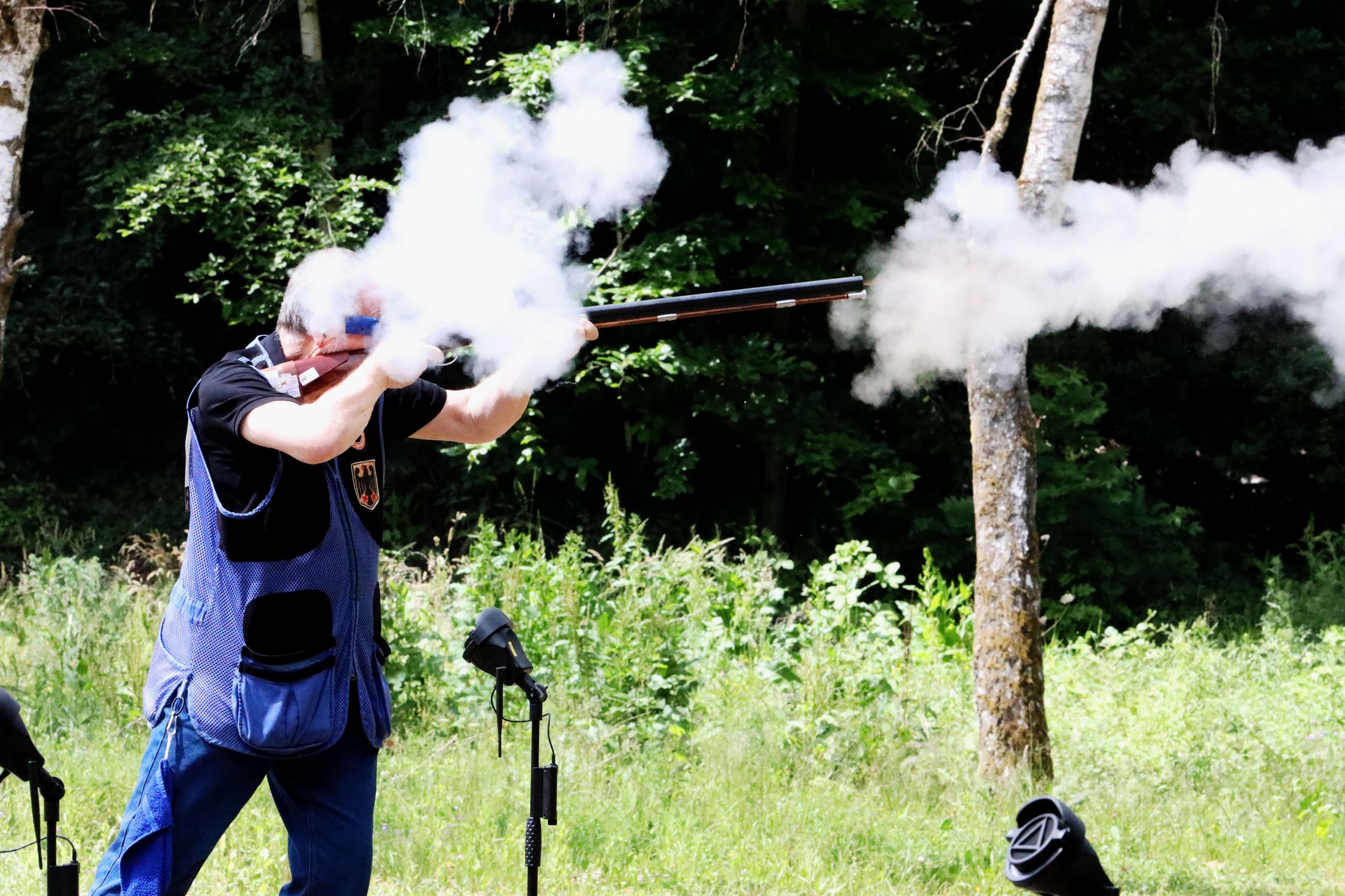 Neben Günther Kühlwein und Jürgen Köhler vervollständigte Hansjörg Obenauer das dominierende Trio des SSV Viernheim. „Durch die Coronapandemie konnten wir wenig trainieren und haben dadurch nicht so überragend geschossen“, stellte der im pfälzischen Zweibrücken lebende 71-Jährige fest, der seit 14 Jahren für den WTC Wiesbaden und den SSV Viernheim in Hessen die Wettkämpfe schießt. Während der Pandemie hatte er seinen Trainingseifer auf die körperliche Fitness konzentriert. „Ich habe 25 Kilo Körpergewicht abtrainiert“, erzählte er und freute sich über seinen sechsten Titelgewinn seit 2009 im Wettbewerb „Perkussionsflinte“. Für seinen Sieg reichten erstmals 22 Treffer, nach denen er mit seinem Viernheimer Vereinskameraden Peter Horneff um den Titelgewinn ein Shoot-Off bestreiten musste. Mit 5:3 Treffer setzte sich Hansjörg Obenauer durch und konnte sich damit neben den beiden Mannschaftssiegen über die dritte Goldmedaille an diesem Wettkampftag freuen.