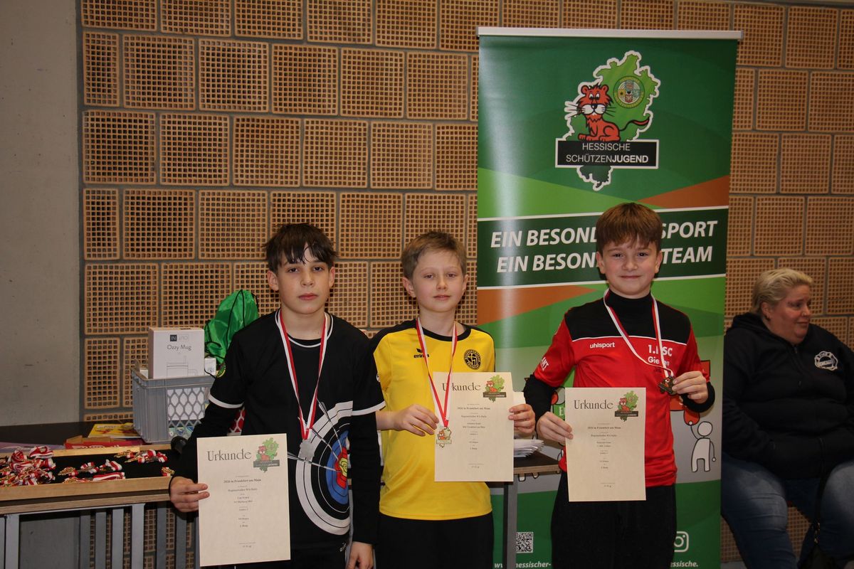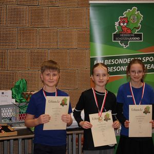 Bei den Jahrgängen 2009 und 2011, die auf die noch kleineren 40er-Scheiben schossen, erreichte Tristana Laumann (Jg. 2011) vom BSC Laufdorf mit 501 Ringen das beste Ergebnis. In der Jahrgangsgruppe 2010 kam Lumi Klug (SV Marburg) mit 478 Ringen auf den ersten Platz, und im Jahrgang 2009 konnte sich Jonathan Bernstein vom SV Kriftel mit 498 Ringen durchsetzen.