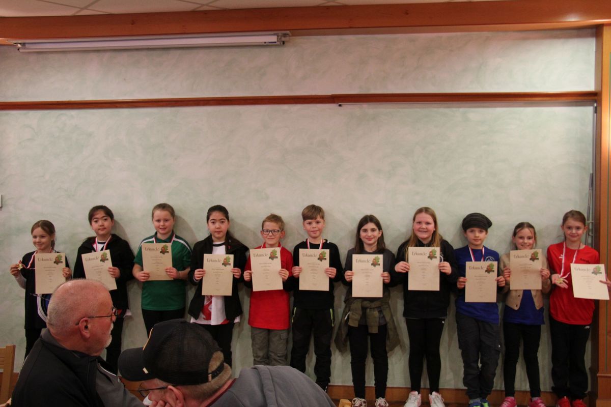 Die Schüler der Jahrgänge 2016 und 2017 tragen ihren Wettkampf auf eine Entfernung von zehn Metern und über 30 Schuss aus. Hier erreichte Aurelia Stock (Jg. 2017) vom SPS Niederwetz mit 282 Ringen das beste Ergebnis. In der Jahrgangsgruppe 2016 kam Emil Orendi vom SV Marburg mit 271 Ringen auf den ersten Platz.