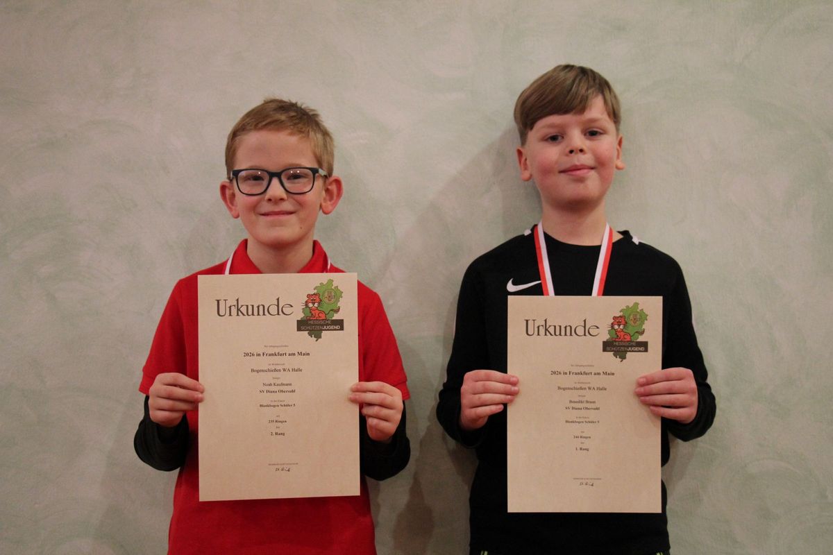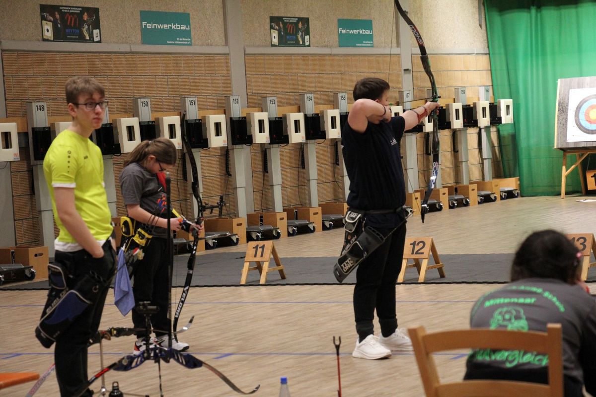Beim Nachwuchs mit dem Recurve-Bogen gab es etliche durchaus beeindruckende Ergebnisse. Das insgesamt beste Ergebnis bei den Schülern der Klassen I bis IV (Jahrgänge 2012 bis 2015) lieferte Johannes Kautz (Jahrgang 2014) vom BSC Frankfurt am Main ab. Er kam bei 60 Pfeilen auf 18 Meter auf hervorragende 553 Ringe. Knapp dahinter erreichte Tom Nickel (ebenfalls Jahrgang 2014) vom SV Marburg 552 Ringe. Im Jahrgang 2015 konnte sich Eevi Schedel (SV Marburg) mit 506 Ringen durchsetzen. Die Jahrgänge 2014 und 2015 schossen bei diesem Wettkampf auf 80er-Scheiben.