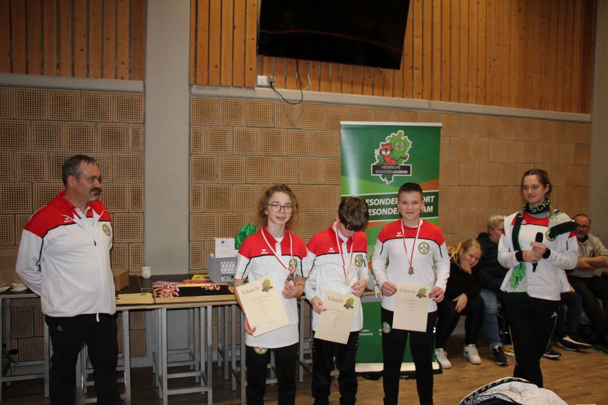 Für einen stimmungsvollen Abschluss sorgten insgesamt fünf Siegerehrungen sowie eine große Tombola mit zahlreichen Preisen, bei der für alle Teilnehmenden etwas dabei war. Durchgeführt wurden die Ehrungen von Finja Welcher und Pia Fackiner, die ebenfalls zum Team der Hessischen Schützenjugend gehören.