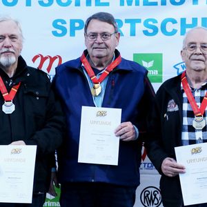 Mit sieben Ringen Rückstand auf die Podestplätze verpasste die SG Mühlheim-Dietesheim mit Karl Konwalinka, Kurt Jürgen Dauth und Heinz Köhler auf Rang vier die Bronzemedaille. Nach Rang vier im Vorjahr schaffte Nikolaus Stemper vom SV Geislitz in der Seniorenklasse III den Gewinn der Silbermedaille. Nach Gold im Jahr 2023, Silber im Jahr 2024 vervollständigte Klemens Stiebler von der SG Butzbach mit Rang drei in der Seniorenklasse IV seine Medaillensammlung. Aufgrund der mit 19:18 mehr erzielten Zehner gewann Karl Konwalinka von der SG Mühlheim-Dietesheim in der Seniorenklasse V (76 bis 80 Jahre) die Bronzemedaille vor dem ringgleichen Horst-Günter Thielemann vom SV Nauborn. Eine glänzende 99er Schlussserie gelang Kurt Jürgen Dauth von der SG Mühlheim-Dietesheim. Er verbesserte sich in der Seniorenklasse VI vom sechsten auf den vierten Rang und verpasste das Siegerpodest knapp um zwei Ringe.